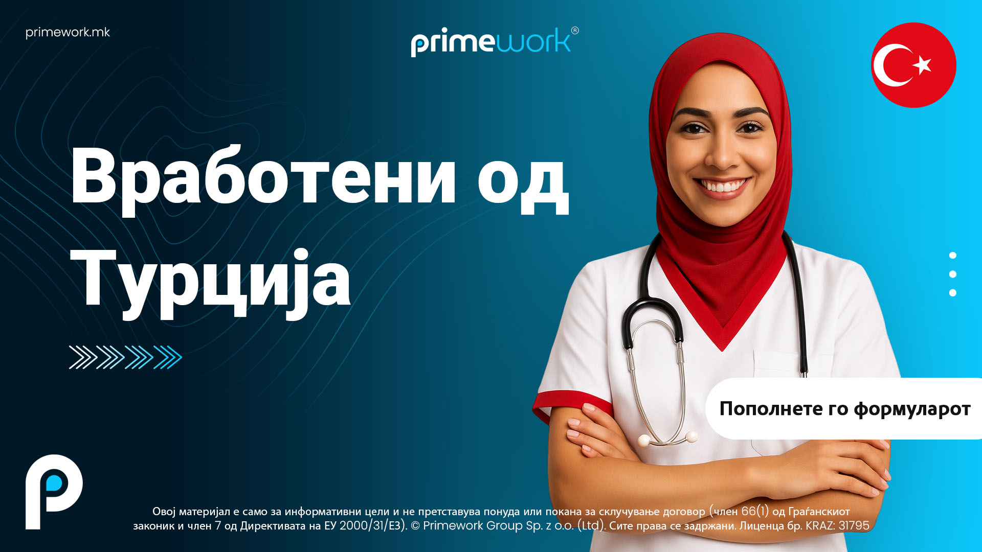 Доколку сте заинтересирани за вработување работници од Турција, контактирајте со Primework – ќе ви помогнеме да поминете низ целиот процес на регрутација и интеграција.